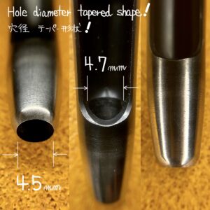 The sharpness of the cutting edge and the tapered shape (inside diameter) that allows the extracted leather scraps to come out without stress realize excellent punching performance.