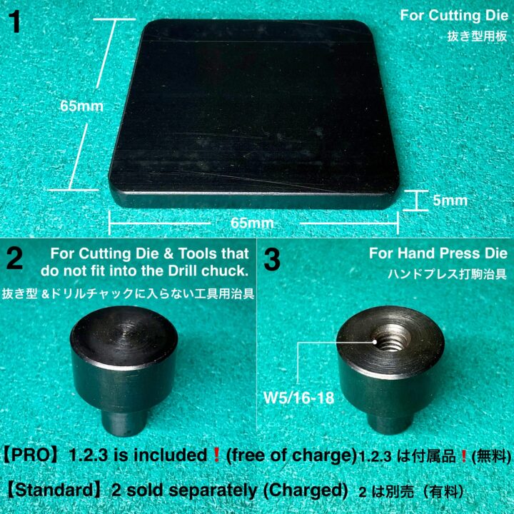 * For Hand Press Board & For Cutting Die & Tools that do not fit into the Drill chuck & For Hand Press Die are included (free of charge).