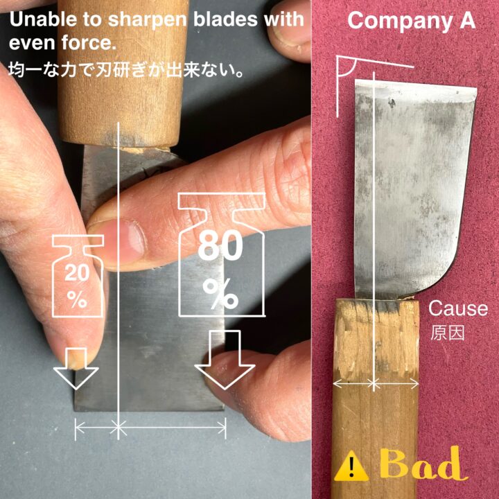 The blade could not be sharpened well, and the blade often became askew as shown in the image above.