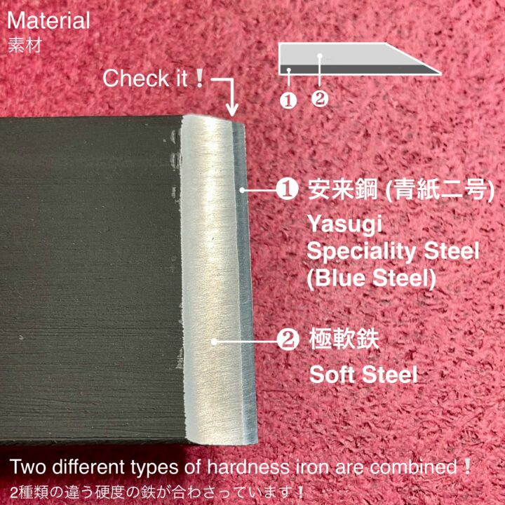 1.) The blade is made of Yasugi speciality steel (Blue steel).