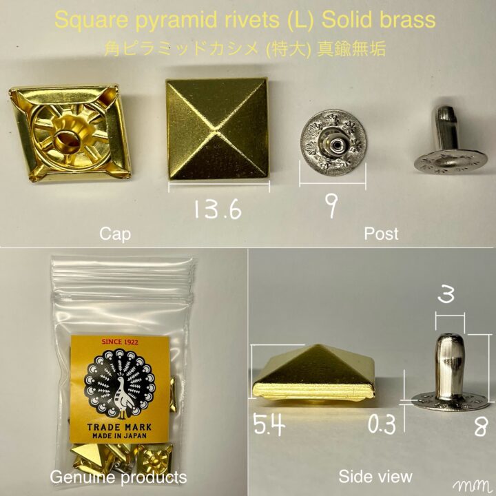 角ピラミッドカシメ (特大/ 13.6mm) 真鍮無垢【Peacock】