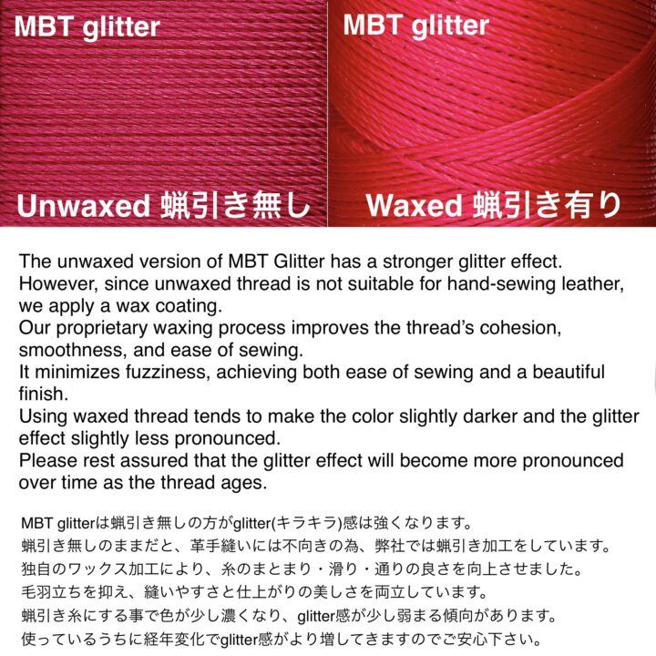 We have applied a wax coating to our 【MBT】 thread, developed as the pinnacle of sewing threads.