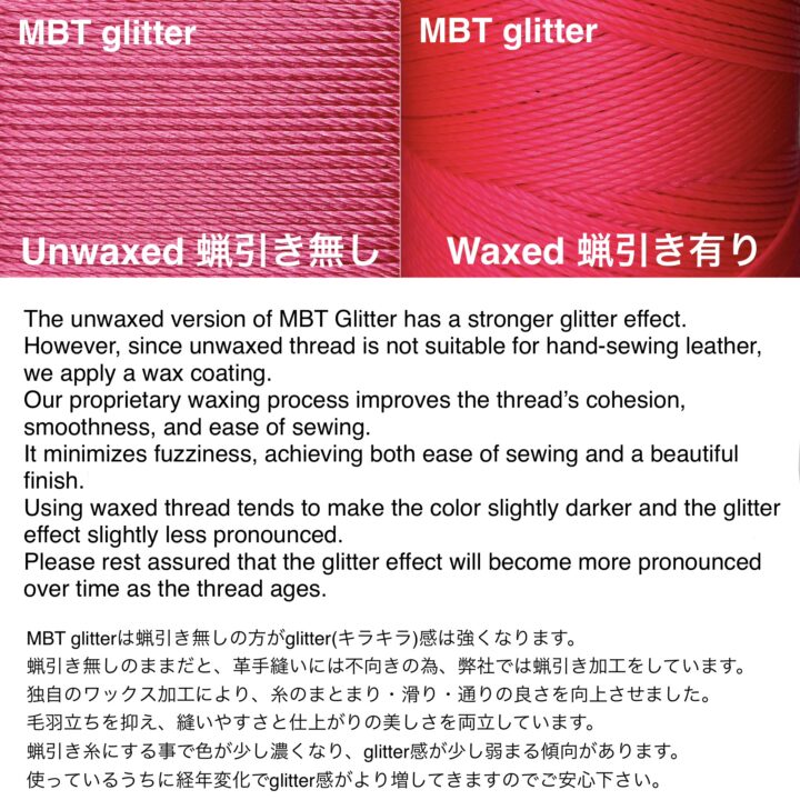We have applied a wax coating to our 【MBT】 thread, developed as the pinnacle of sewing threads.