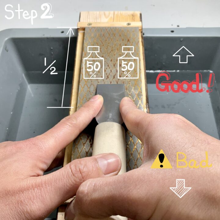刃研ぎを行う前に、中砥石(#1000)・仕上砥石(#6000)を【ダイヤモンド砥石(#300)で面直し】して下さい。