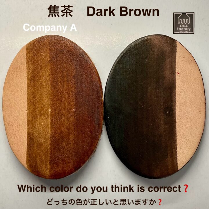 革の銀面、コバ面、床面の全てに染色が出来て、縫った糸とも色味が合う水溶性染料を作りたくて開発しました。