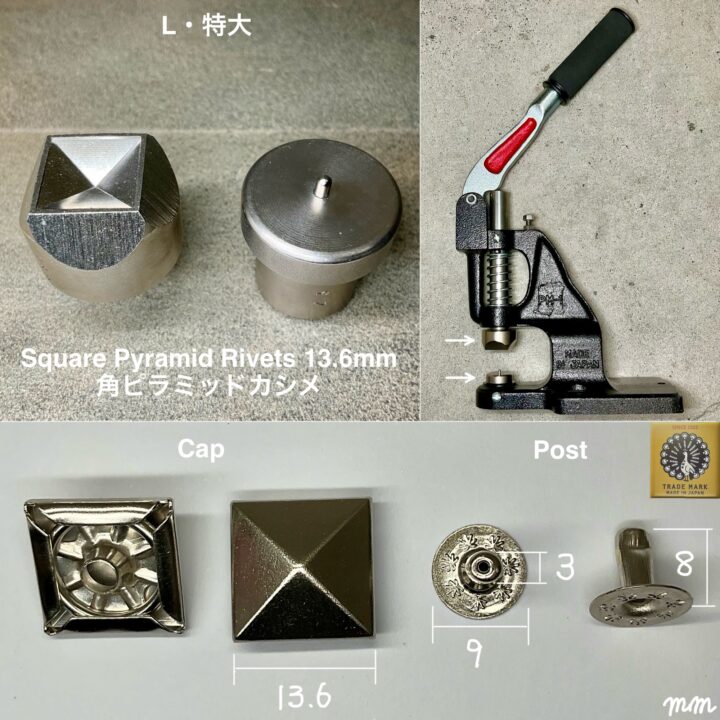 ハンドプレス打駒 (角ピラミッドカシメ 特大 13.6mm)【Peacock】