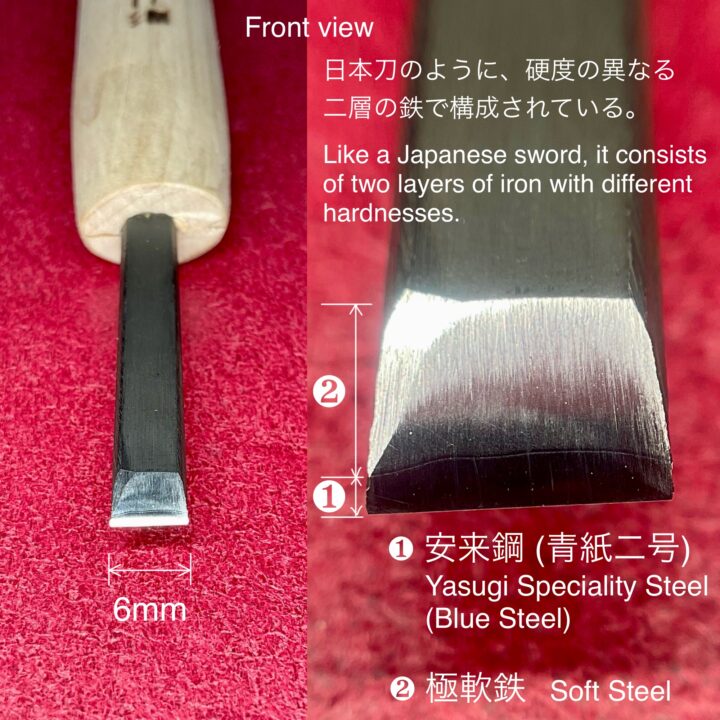 ①安来鋼(青紙2号)を贅沢に使用しています。