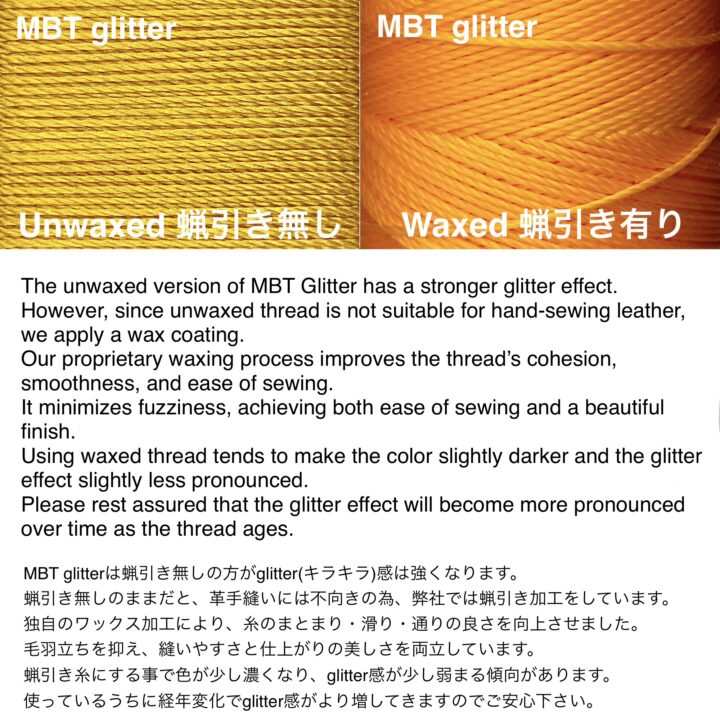 縫糸の最高峰として開発した【MBT】に蝋引き加工を施しました。